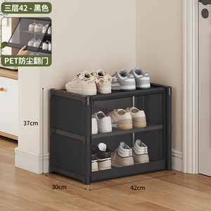 【防塵透明下駄箱】お手頃ブラック-3段42