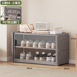 【防塵透明下駄箱】グレー-3段64