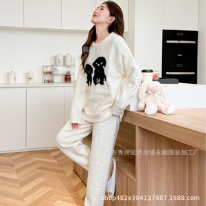 女性用の秋と冬の厚みのあるハーフベルベットホーム服、新しい高級パジャマセット、屋外で着用できるキュートで甘いスタイルのパジャマ