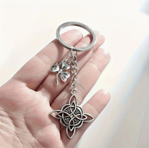 跨境热销 巫婆结钥匙扣 - 三叶草朋克风魔法符号吊坠,合金材质