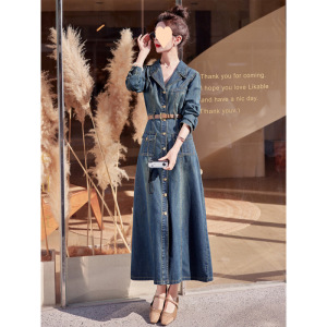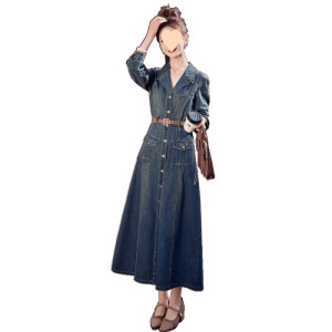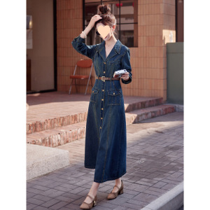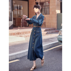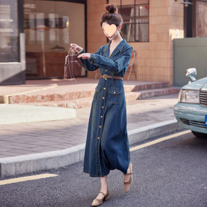 女性のための膝丈デニムドレス春と秋 2025 新しいウエスト痩身レトロ香港スタイルミッドレングススカート