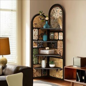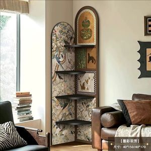 中世スタイルのコーナー収納ラックフレンチレトロスクリーン本棚一体型壁三角収納床から天井までの収納ラック