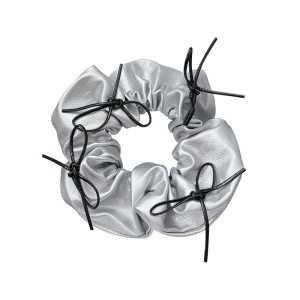 甘くてクールなシルバーレザーリボンヘアゴム、ハイエンドのパーソナライズされたヘアゴム、ゴムバンド、ヘアアクセサリー