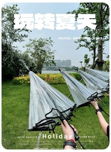 水鉄砲傘、長柄水鉄砲傘、透明傘、水遊び、引き出し式水鉄砲、水遊びおもちゃ、子供用傘、日よけ