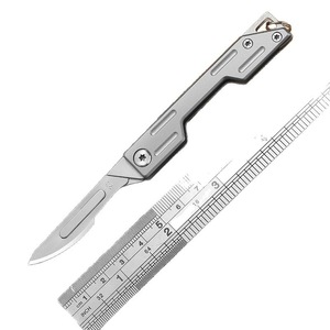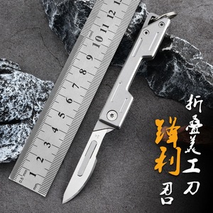ステンレス鋼折りたたみロックレスポータブルナイフ交換可能な刃ミニナイフ彫刻メスキーホルダーナイフ