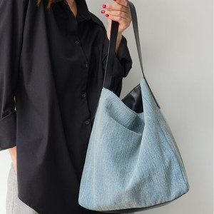 日本と韓国の新製品デニムキャンバスバッグ韓国スタイルレイジースタイル大容量レザーステッチキャンバストートバッグショルダーバッグ