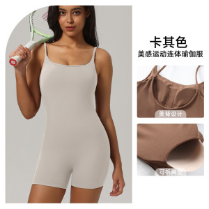 ヨーロッパとアメリカのクロスボーダーアマゾンは、胸パッド付きのヌードヨガサスペンダージャンプスーツ、女性用のタイトなスポーツジャンプスーツを専用に提供しています