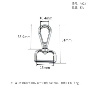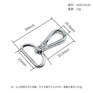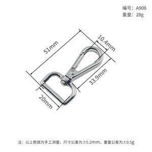 シルバーの角型バックルキーホルダーA531シリーズ、バッグアクセサリー、バッグショルダーストラップ回転式キーホルダー、ハンドバッグ用バックル