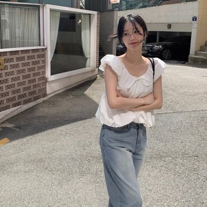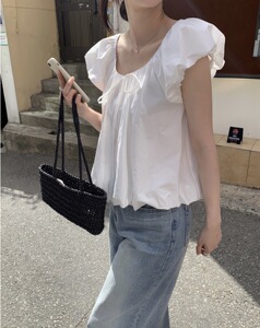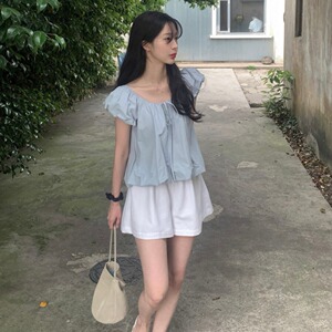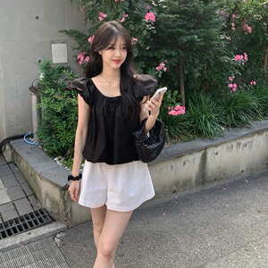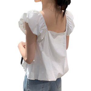 韓国シックな 2025 夏の新フレンチスイート年齢軽減パフスリーブネック半袖シャツ女性のシャツ