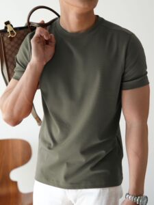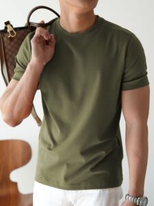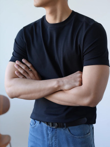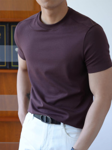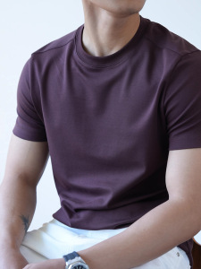【高級グレード】パープルクリーンバージョン スーパーソフト 230G 液体アンモニアクールシルケットコットン 夏万能半袖Tシャツ メンズ トレンド