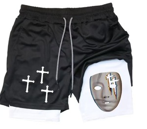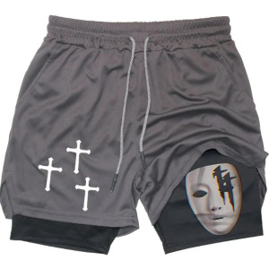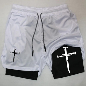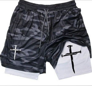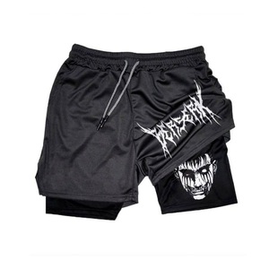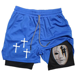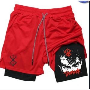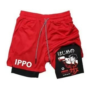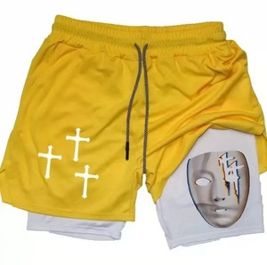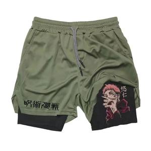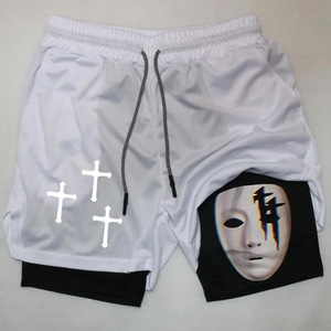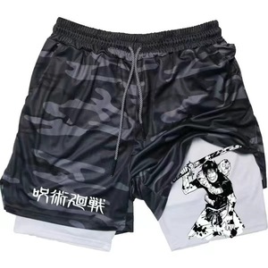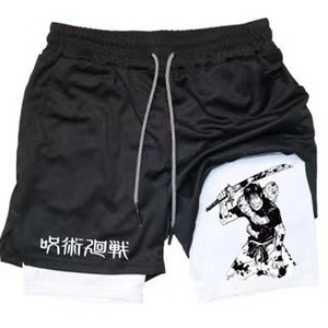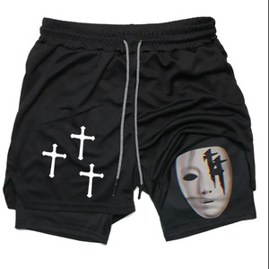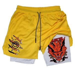 2025 ヨーロッパとアメリカの国境を越えた売れ筋アニメーションプリントトレンディなスポーツショーツ伸縮性と通気性のあるフィットネス二重層ショートパンツ