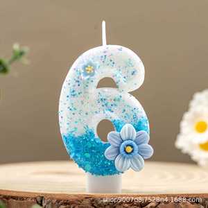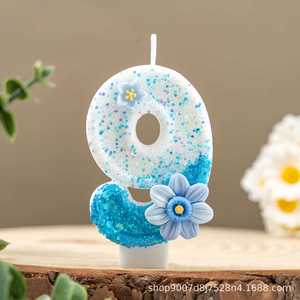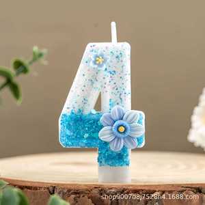 グラデーションブルーの花デジタル誕生日キャンドルアマゾン越境電子商取引パーティーケーキデコレーション1歳クリエイティブキャンドル