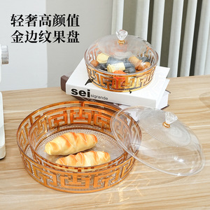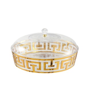 ラウンド模様のキャンディトレイ透明蓋付きゴールデンフルーツトレイ幼稚園スナック雑貨収納ボックス