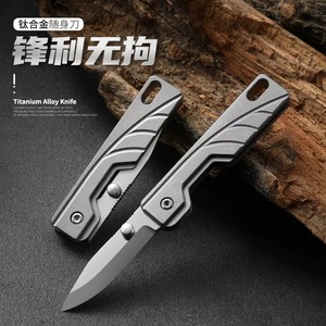 新しいハーフリーフチタン合金ナイフハンドルポケットナイフポータブルキーホルダーナイフアウトドアアドベンチャー折りたたみナイフ