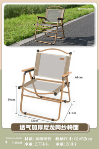 通気性の良い大型メッシュカーミットチェア【カーキ】