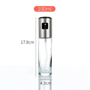 プレススプレーオイルボトルキッチンスプレーオイルボトルバーベキュー家庭用100ミリリットルガラス調味料ボトルステンレス鋼ノズルスプレーオイルボトル