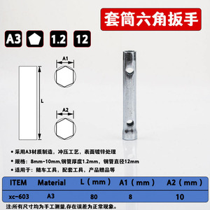 鋼管ソケットレンチガソリンソーバイクスパークプラグアクセサリー修理ツールシンプルな中空六角レンチ