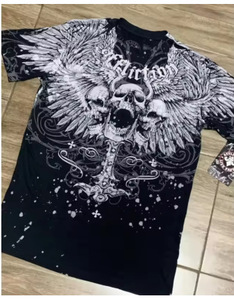 Y2K メンズ T シャツ、3D レトロ T シャツ、ゴシックスカルクロスプリントの女性ストリートウェア