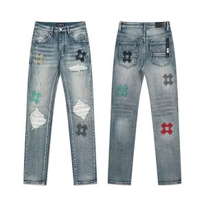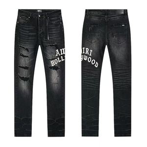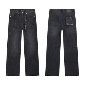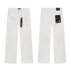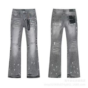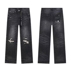 クロスボーダー外国貿易パープルアメリカンハイストリートリッピングパッチトレンディレトロストレートamウォッシュジーンズパンツ男性用