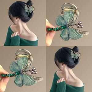 Qinghe Dieying~気質レトロ風刺繍蝶クリップ後頭部半分結びシャーククリップヘアアクセサリーヘアツイスター