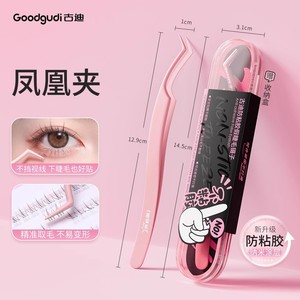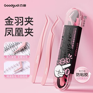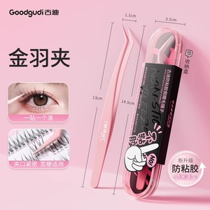 Gudi アンチスティックピンセット接着剤不使用の初心者向けつけまつげ、高精度まつげアーティスト専用プロ移植ツール、ゴールデンフェザークリップ