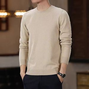2025 冬の新メンズラウンドネック肥厚セーター若者スリム春と秋暖かいカジュアル長袖紳士服