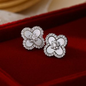 ホワイトKホワイト四つ葉クローバーイヤリング【シルバー925針】