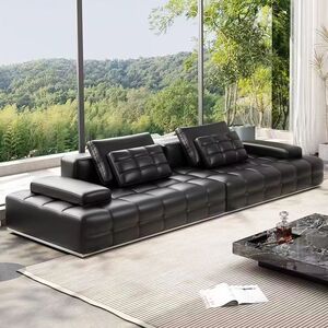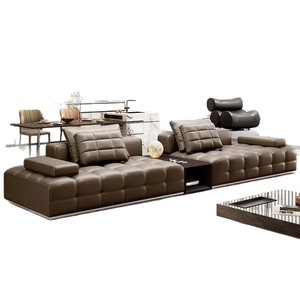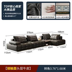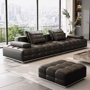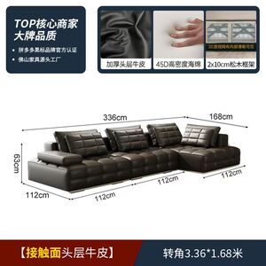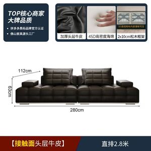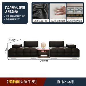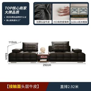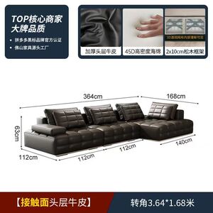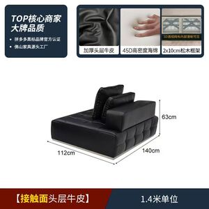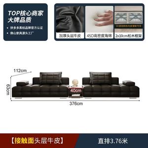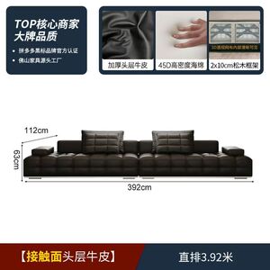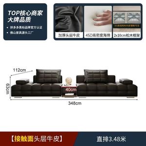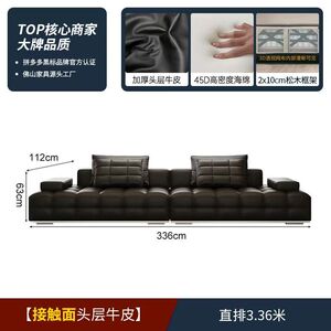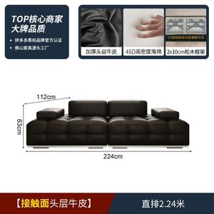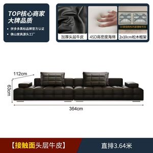 ローレンス本革ソファ イタリア風ミニマリスト 一層牛革ソファ 高級リビング 大型別荘 大型黒牛革
