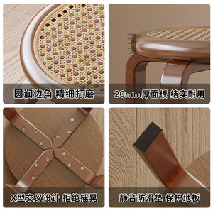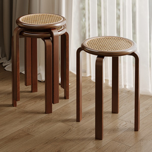 無垢材のベンチ、家庭用スツール、低いスツール、ラウンドスツール、リビングルームの籐編み木製収納可能スタッカブル風車スツール、大人用レジャー