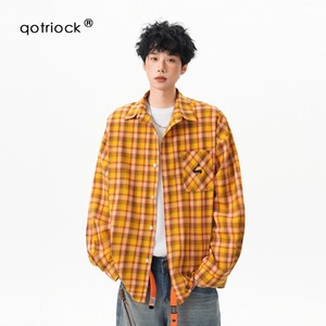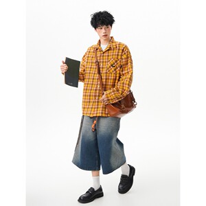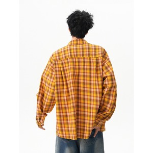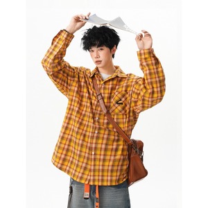 多巴胺黄格子衬衫外套男春季美式复古黄色男士长袖衬衣女生格纹春