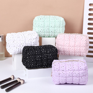 おしゃれな八角形ポリエステル化粧品バッグ、旅行に便利なミニトイレタリーバッグ、シンプルなスタイルのスパンコールポータブル収納バッグ