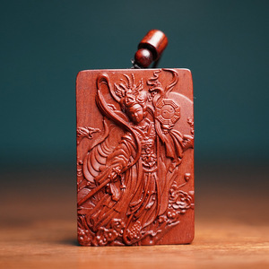 天然雷撃ナツメ木九天玄女タグトークンペンダント手作り木彫り無事なタグ