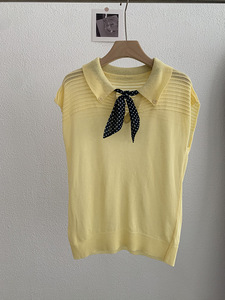 Omalai ラペル水玉シルクスカーフノースリーブセータートップ 2025 夏韓国ファッション多用途女性 3672