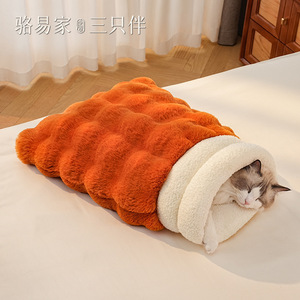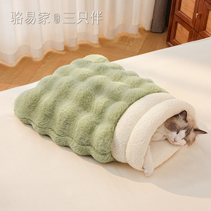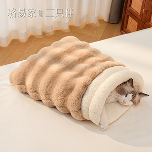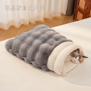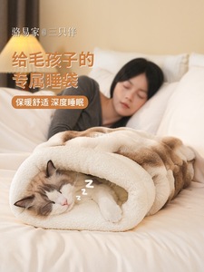 猫の巣、猫の寝袋、猫の布で包んだ冬用の暖かい猫の寝巣、半密閉型の安全な子猫の寝袋、ペットの巣