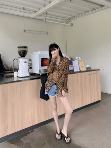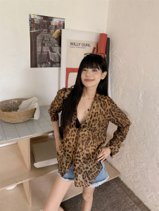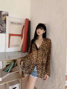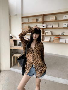 レトロヒョウ柄ポロカラー長袖シャツ女性の夏のニッチルーズ痩身シャツ多用途日焼け止めカーディガントップ