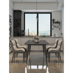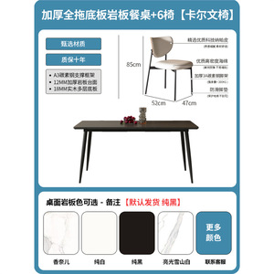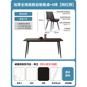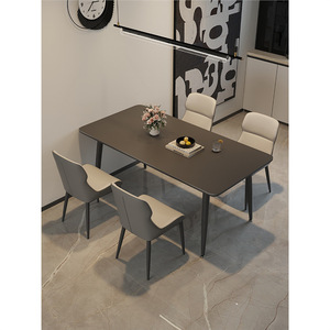 全拖岩板餐桌家用小户型餐厅现代简约长方形饭桌黑色岩板桌子餐桌