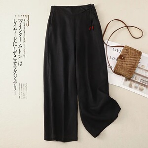 デザイン芸術的で年齢を軽減する2025春夏新作ルーズワイドレッグパンツドレープカジュアルパンツ綿とリネンの快適な婦人服