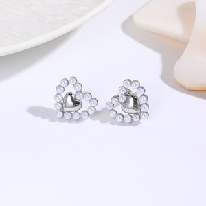 ニッチな気質、高級フェイクパールラブイヤリング、新鮮で甘い銅メッキ18K色保持インターネットセレブレディースイヤリング