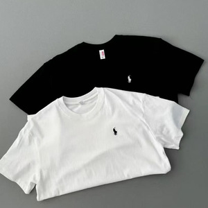 貿易男女バオルークラシックポニーロゴ刺繍半袖プルオーバーラウンドネック無地カップルトップT