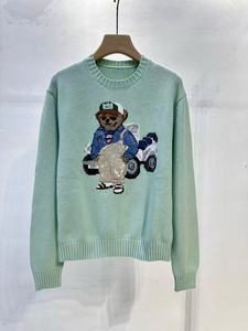 24 レディースニットセーター、クマ刺繍、クマ織り花柄、ニットラウンドネックプルオーバートップス、多用途