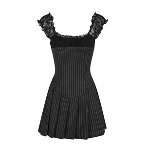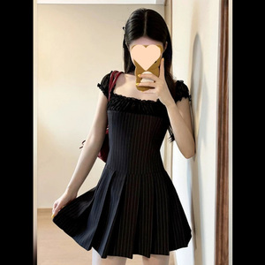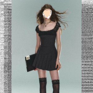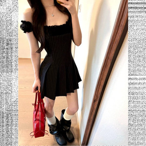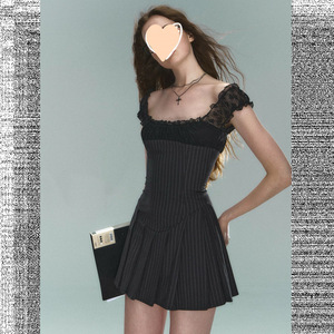 夏のファッションストライプ半袖ドレスニッチデザイン多用途レースホットガールショートスカートフレンチスリムイン