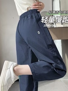 冰丝速干运动裤女夏季薄款小个子高腰九分萝卜裤宽松老爹哈伦裤子