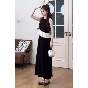今年人気の美しい服装、新しい大きいサイズのレディーススプライシングフリルノースリーブトップスとスカートのツーピーススーツ