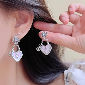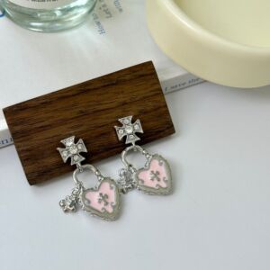 ピンクのドリップ釉薬ラブクロウクロスペンダントイヤリング女性のニッチデザイン甘くてクールな女の子多用途イヤリングイヤリング