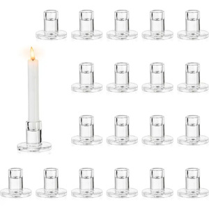 透明な短い円錐形のT字型ガラスキャンドルホルダー20個セット、クリスマスデコレーション