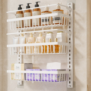 パンチフリーのバスルームトイレドア後部収納ラック狭い隙間壁掛け多層壁収納棚トイレキャビネットの横