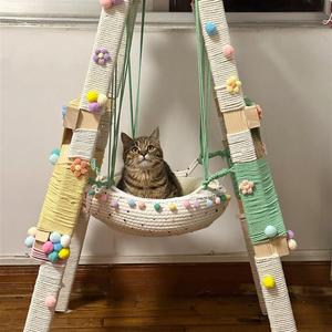 diy 猫クライミングフレーム センテナリウムロープ 猫スクラッチポスト グリーン ナチュラル麻ロープ 自家製手作りはしご 改造材料 麻ロープ