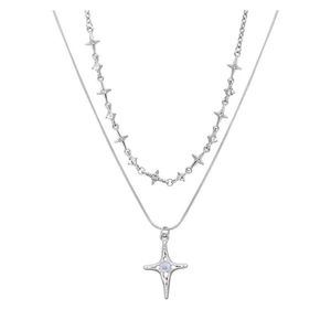 チタン鋼色褪せない二重層四芒星ジルコンネックレストレンディなホットガールヒップホップパーソナライズされたハイエンドアクセサリー