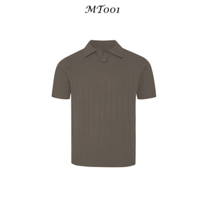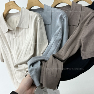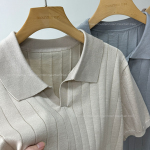 オールドマネースタイルブレンド高知ニット半袖Tシャツ無地織りピットストリップVネックポロシャツトレンドブランド