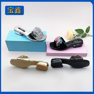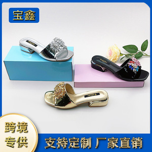 国境を越えた貿易ヨーロッパとアメリカの女性の新しいスクエアトゥスリッパ、ファッショナブルでハイエンド、家庭用と屋外用の多用途で快適なスリッパ